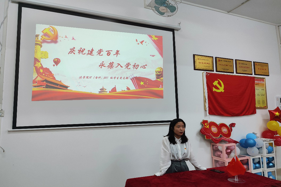 为增强党员的责任担当意识、荣誉感和归属感,2021年6月30日晚上,太阳成集团tyc18(含19、20级)员工党支部在第七教学楼105室开展“以青春之名,向党致敬”政治生日活动。活动由员工党支部书记覃业敏主持。