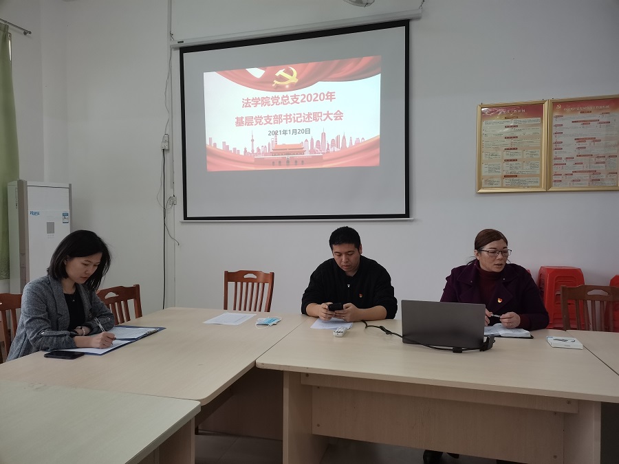 教工党支部书记唐犀、17级员工党支部书记梁嘉仪和18级(含19级、20级)员工党支部书记展示了各支部在“三会一课”组织生活、“两学一做”学习教育、学习十九大精神专题和《习近平谈治国理政》第三卷学习等方面的成果,并从理论学习、实践活动、存在问题、工作展望等方面分别作出年度工作汇报。