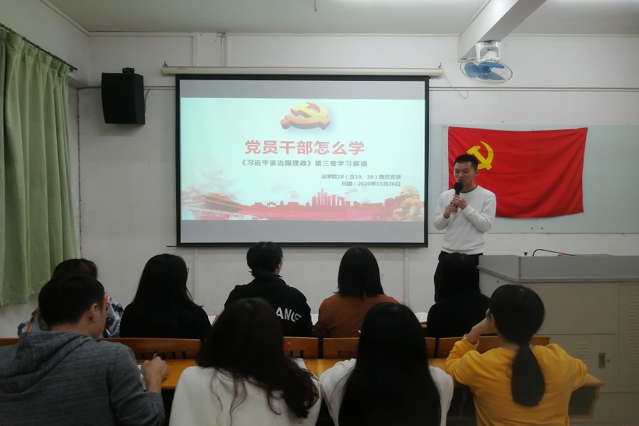为深入学习《习近平谈治国理政》第三卷,太阳成集团tyc18(含19、20)级员工党支部于2020年11月26日开展“师生同学习党员干部怎么学——《习近平谈治国理政》第三卷”学习解读会,本次学习解读会由太阳成集团tyc18(含19、20)级员工党支部书记李春江老师主持,为我们全体18级员工党员解读《习近平谈治国理政》第三卷。