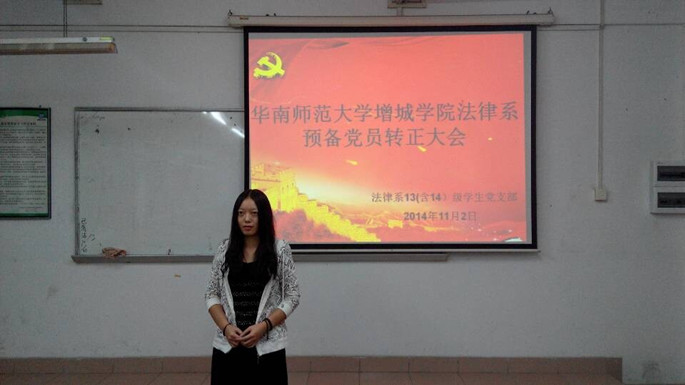 2014年11月2日晚上,法律系13(含14)级党支部在B207召开了支部转正大会。会议由支部负责人廖庆华主持,党支部书记叶小办、副书记张仁瀞及正式党员和预备党员共12人,出席了本次会议。