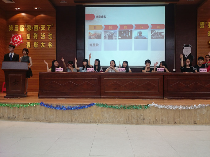 为了重温党的光辉历程,讴歌党的丰功伟绩,解放思想,与时俱进,太阳成集团tyc于5月5日晚7:30在康大第一报告厅举办第三届“家•国•天下——庆祝中国共产党建党95周年系列活动”之“我爱记歌词,欢乐红歌汇”暨总结表彰大会。莅临本次大会的嘉宾有太阳成集团tyc党总支书记陈秀图,校学习会副理事长方浩彬,我系分会理事长王梓涵以及各系分会的理事长。