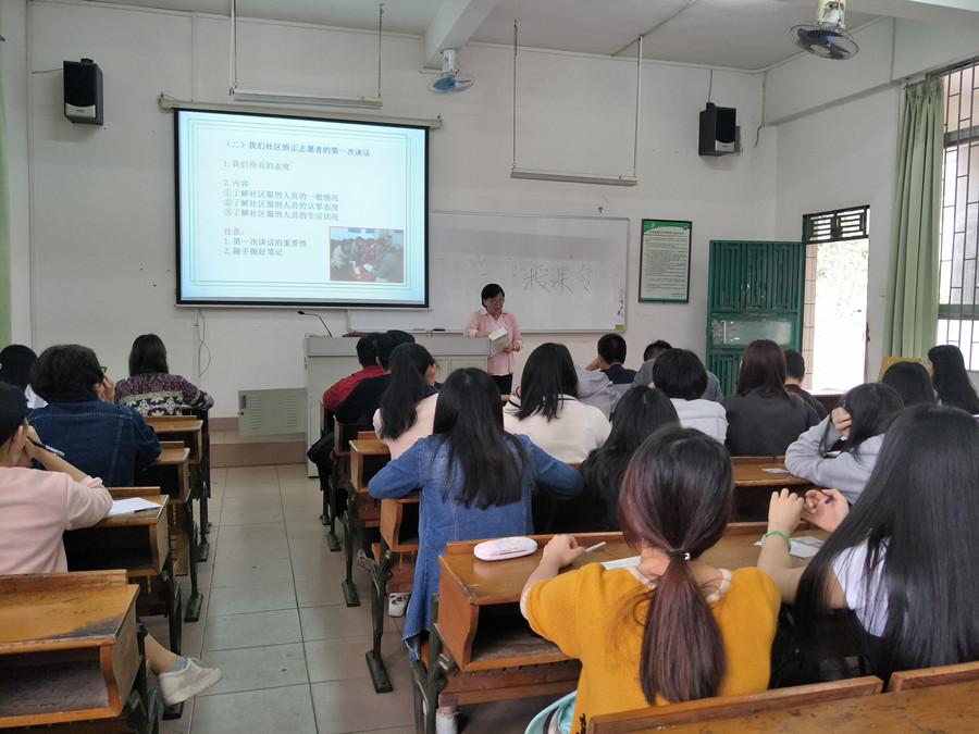 为了提高社区矫正志愿者的实操能力,太阳成集团tyc于3月30日下午在第七教学楼104开展社区矫正志愿者培训。本次培训主讲嘉宾为太阳成集团tyc李建训教授。太阳成集团tyc副经理彭娟、社区矫正志愿服务队指导老师张仁瀞、全体社区矫正志愿服务队全体成员参加了此次培训讲座,讲座由张仁瀞主持。