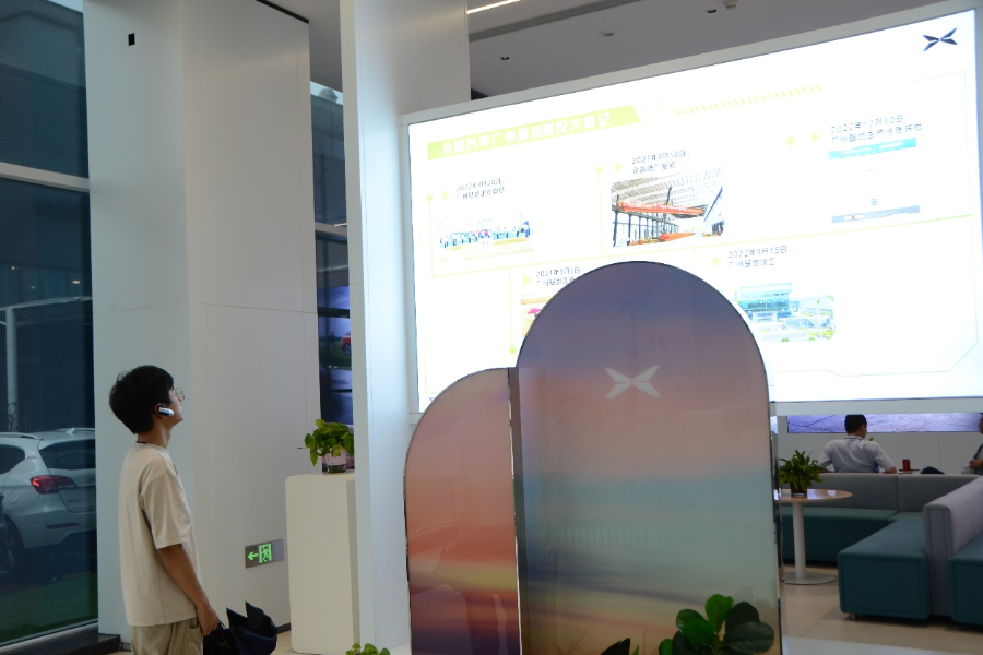 活动伊始,师生们在小鹏汽车广州智造基地专业讲解员顾红的引导下,参观了小鹏汽车广州智造基地中心。讲解员结合视频形式为师生们详细介绍了小鹏汽车自创立以来在知识产权方面的积累与发展历程,以及小鹏汽车全场景语音、XPOWER3.0动力系统等新能源汽车领域知识产权相关成果,并通过对基地现有车型的展示,向师生们介绍了小鹏汽车在设计、性能、智能化等方面所取得的卓越成就。