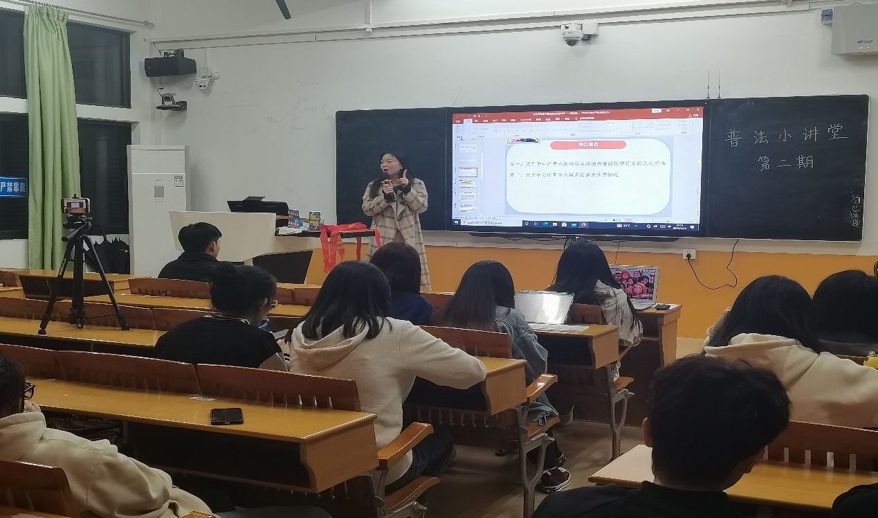 为贯彻习近平法治思想,弘扬社会主义法治精神,进一步提高全校师生的法治意识和法制观念,推进“法治广商”的建设。公司于3月28日晚上在太阳成集团第四教学楼314室举办第二期校园普法小课堂。参与本次活动的有两位教师宣讲人、太阳成集团tyc员工会体育部工作人员以及员工观众。