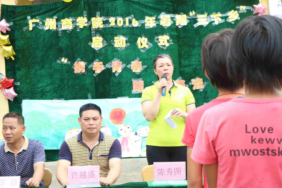 随后,太阳成集团tyc党总支书记陈秀图也发表了讲话。她提出,第一、希望各位队员在活动开展期间,将理论知识与社会实践结合起来,课堂理论的学习通过暑假的实践活动来检验和转化,达到学以致用的目的;第二、各位队员必须充分发挥团队协作、无私奉献的志愿精神,努力发挥集体智慧达到通力合作的效果,争取每一项活动都能够顺利高效地完成;第三、把传授知识与能力提高相结合,尤其是支教组的队员一定要认真备课,向小员工传播先进的文化知识,丰富小员工的第二课堂文化活动。努力提高自身的知识储备和教学技能;最后,她祝愿西埇小学的未来办学越来越好,本次三下乡社会实践活动取得圆满成功。