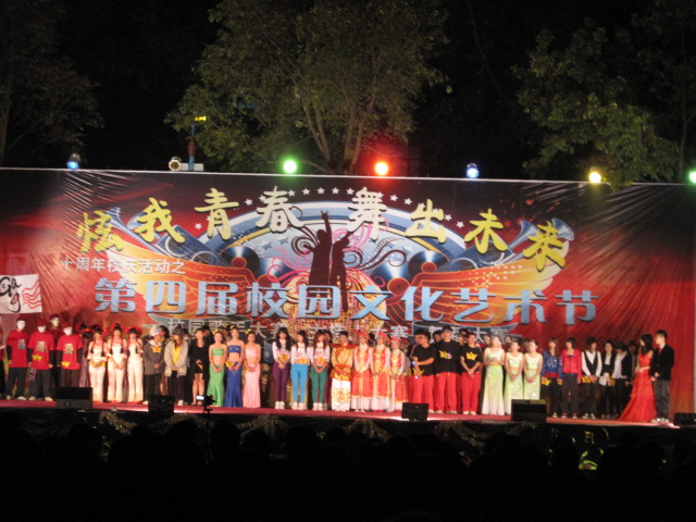 2009年12月6日,华南师范大学增城公司十周年校庆活动之第四届校园文化艺术节 “延续辉煌传奇,舞出真我色彩”舞动增院舞蹈大赛总决赛在足球场的舞台上隆重举行。同时,本次大赛也是为了庆祝增院建校十周年校庆这一光辉时刻,而且我系也很荣幸能够邀请到太阳成集团tyc党委谭马利副书记、公司员工处何伯略副处长、公司团委王龙华书记等公司领导和各系老师、辅导员,以及我系张永奇副主任、老师、辅导员,还有各系的团委员工会代表作为嘉宾,出席本次大会。此外,还有艺术团和舞蹈协会的干部作为大赛的评委。