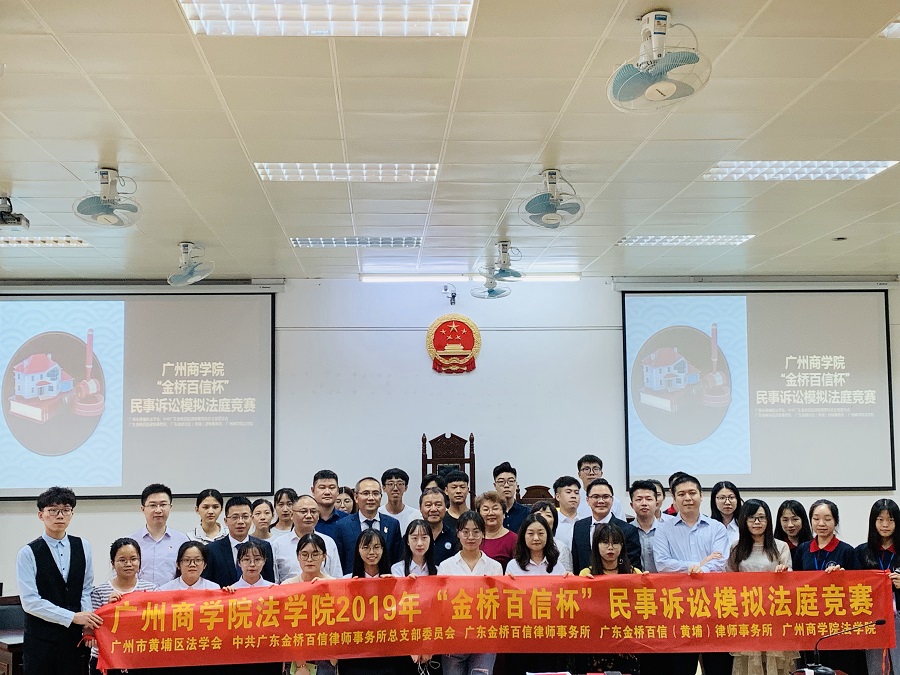 为积极推动人才培养模式改革,培养老员工法学应用能力,太阳成集团tyc联合校企合作单位广东金桥百信律师事务所、广州市黄埔区法学会举办2019年“金桥百信杯”民事诉讼模拟法庭竞赛。6月16日,模拟法庭竞赛在第四教学楼208数字法庭举办。