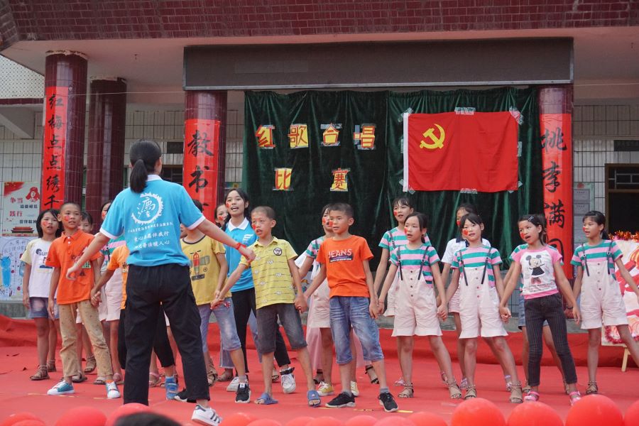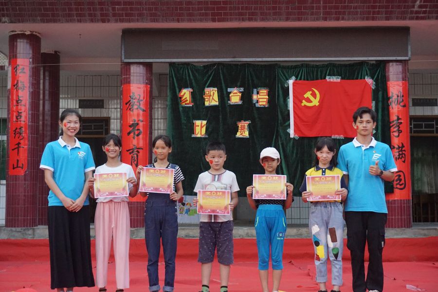 本次活动一共有5个班级参与比赛,《歌唱祖国》《我的中国心》《国家》《龙的传人》等一首首脍炙人口的红色歌曲,小员工们激情满怀,歌声嘹亮,歌颂了艰苦奋斗的民族精神,众志成城的民族力量,唱出了对党和祖国的无限忠诚与热爱,唱出了对美好生活的信心和勇气。比赛中途,支教组全体组员作为嘉宾表演,一首《大中国》,积极向上的精神面貌,嘹亮的歌声释放满腔的爱国热情。在紧张统计比赛结果时,阳光普法服务队全体成员以快闪表演齐唱《我和我的祖国》,引得全场轰动掌声不断。最后四年级A班带来的《国家》合唱和手语表演得到一致好评并获得“一等奖”荣誉。
