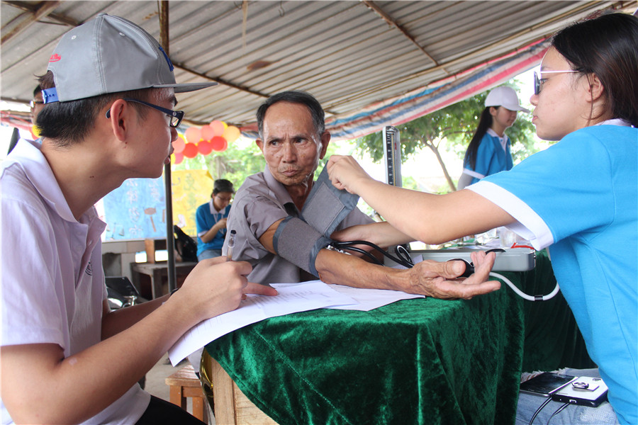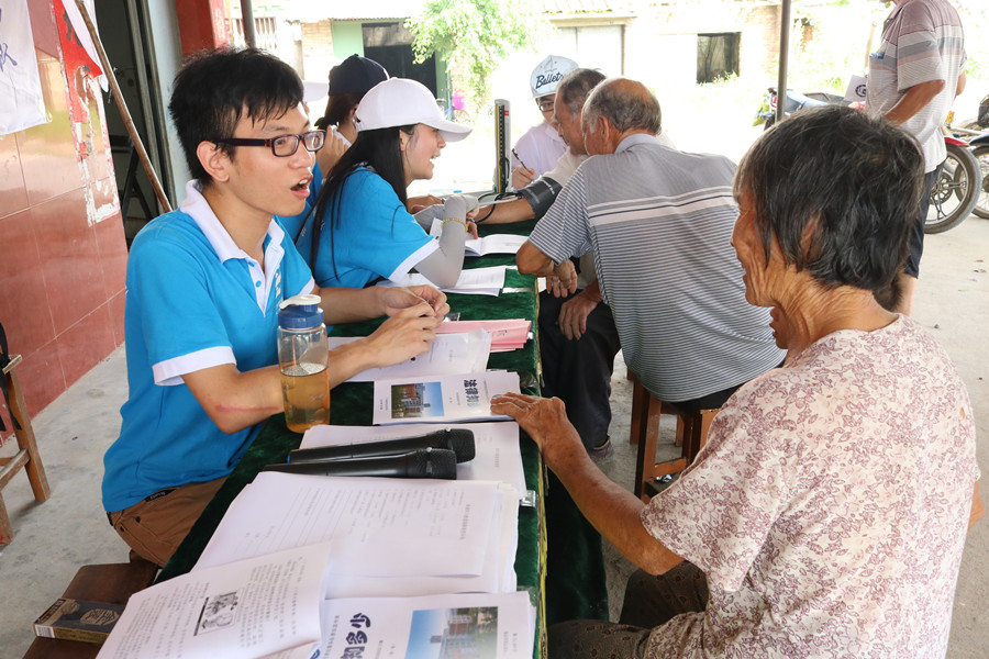 7月15日上午,太阳成集团tyc阳光普法服务队在湛江市遂溪县老西埇村进行“普法与医疗”摆摊,为村民们义务提供血压测量,法律咨询以及普法宣传等服务活动。