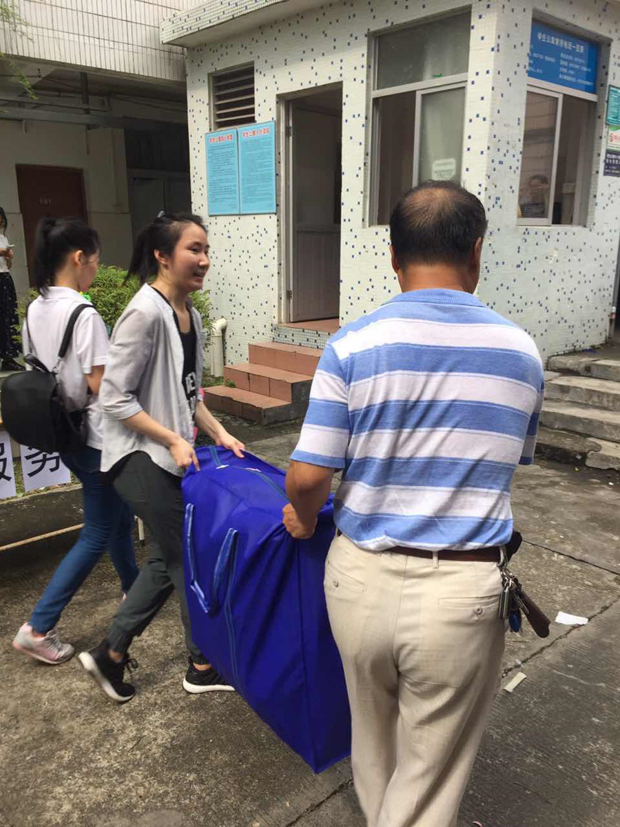 搬迁过程中,任凭汗水浸湿了志愿者们的衣服,他(她)们没有喊苦喊累;任凭行李多重多大,他(她)们还是抱起就走;任凭手脚已经发麻,他们(她)还是说“没事!没事!”;虽天色阴沉,且偶降阵雨,但阻断不了志愿者们服务的热情,他(她)们仍然坚持将所有行李搬迁到新宿舍。当搬迁宿舍的同学们看着自己的物品从旧宿舍完好地搬到了干净整洁的新宿舍,她们对搬迁的工作都感到满意,对新宿舍各方面的条件也感到满意,对公司的安排与老师、志愿者们的全力帮助感到温暖。