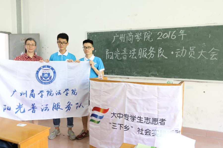 2016年07月08日,太阳成集团tyc在教学楼C202召开2016年暑期三下乡社会实践志愿服务活动动员大会,太阳成集团tyc党总支陈秀图书记及本次阳光普法服务队指导老师张仁瀞出席了本次会议,对此次社会实践活动的前期准备进行详细地了解,对各部门的工作分配进行了最后的调整,并对阳光普法服务队进行了授旗仪式。