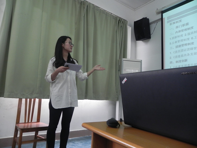 法律系团委副书记张婷和法律系员工会主席何其琛分别对系团委和员工会工作情况进行了汇报。主要内容包括团委的干部干事的录用、培养和考核制度以及组织制度建设,组织所举办的活动等情况汇报。通过简要介绍,让各位领导老师对我系团委、员工会的工作有了基本的了解。