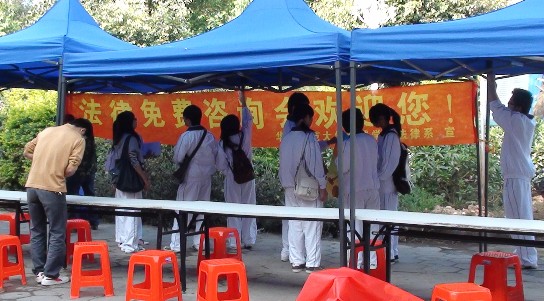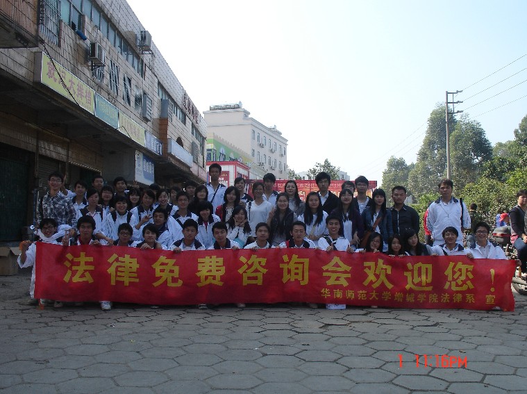 在我系陈秀图书记和林婉芳老师的带领下,华南师范大学增城公司法律系于2010年12月2日在镇龙开展了司法咨询活动。当天早上8点45分到达镇龙,进行了现场布置。