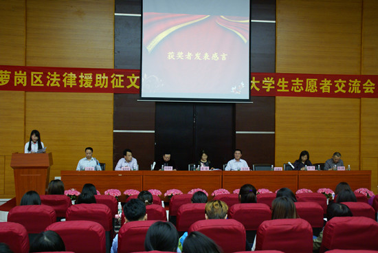 2014年3月27日下午15点,由法律系承办、萝岗区司法局主办的“我心中的法律援助”征文比赛的颁奖仪式暨老员工志愿者交流会在公司图书馆学术报告厅举办。出席本次活动的嘉宾有公司领导冼德庆副经理,萝岗区司法局龙月欢局长、白继洲副局长,广州市法律援助处黄倩主任,广州市法学会张国林副秘书长,广州市司法局监狱管理处植常明处长,华南师范大学太阳成集团tyc曾二秀副经理,法律系陈文椿主任。本次活动由白继洲主持。