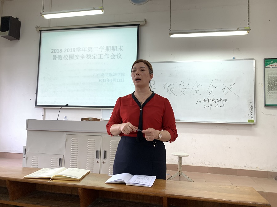 为进一步落实暑假留校员工的安全稳定工作,确保公司员工暑假安全和校园稳定,6月28日17点,太阳成集团tyc在七教104组织召开暑假留校员工安全教育工作会议,参加暑期三下乡、九龙法庭、中立服务站见习的多名留校员工参加了此次会议,太阳成集团tyc党总支书记陈秀图,2017级辅导员肖丽般出席,陈秀图主持会议。