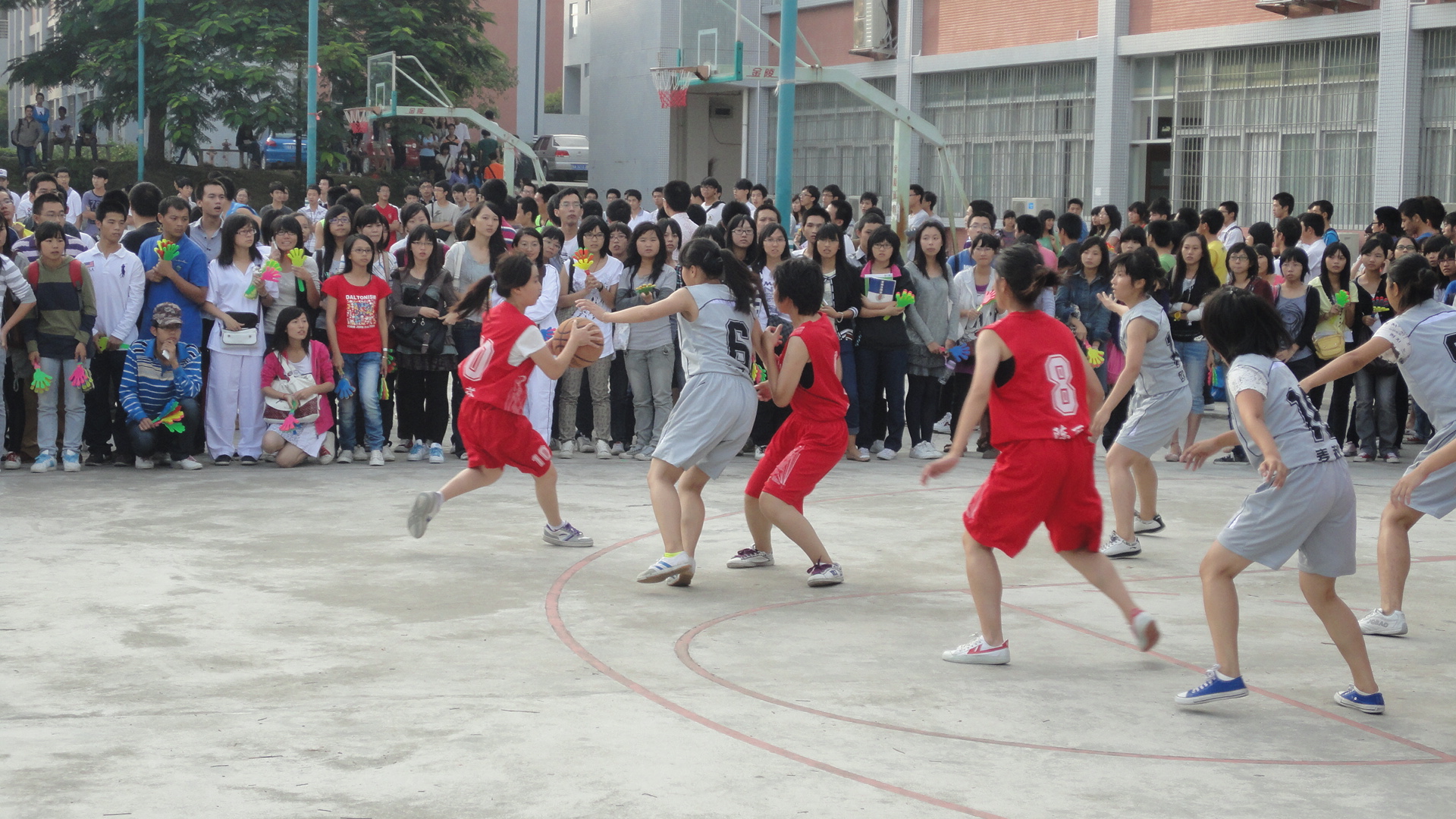 一声哨响后,比赛正式开始,在第一节中彼此都体力充沛,队员们互相发起了猛烈地进攻,但双方都不分上下,经济系只以一分领先。到了第二节,法律系进攻愈加猛烈,由于对方的失误,得来了多次罚球的机会,法律系 7 号球员乌桂英凭借高超的投篮技术准确无误的投进了 6 个球,每一次进球无不让全场观众为之高声呐喊,掌声震耳欲聋,场面气氛甚为热烈,法律系的队员都信心大增,内心充满了激情与活力。随着得分的不断增加,比赛也进入了下半场,法律系的持续领先给了对手很大压力,于是经济系奋起直追, 法律系的队员 多次传球都被其截住,经济系的 6 号球员更与法律系 7 号球员和 10 号球员产生数次正面交锋,战况极其激烈,让观众热血沸腾,每到关键时刻,两边的啦啦队都会发出有力的呼喊,一次次的把比赛推向高潮。