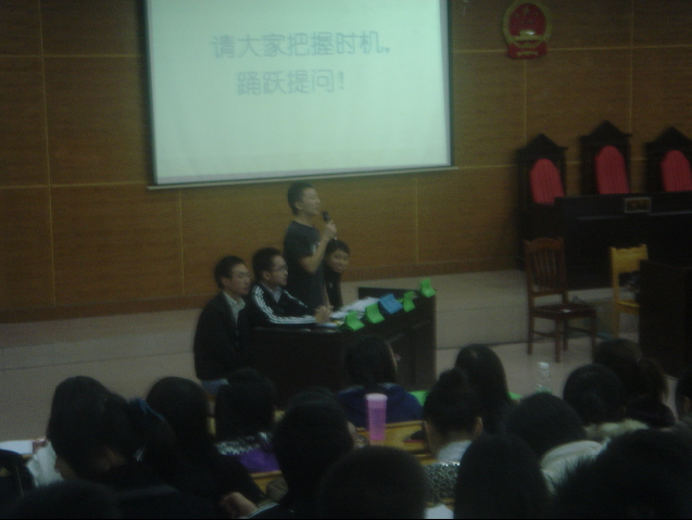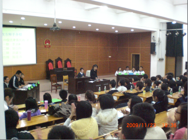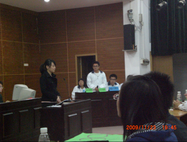 2009年11月23日晚7:30——9:30法律系在A栋2楼模拟法庭举行09级法律系“新生杯”辩论赛决赛,经过了法律系员工会学习部的努力与法律系辩论队的协助,“新生杯”辩论赛终于顺利地拉下了帷幕。