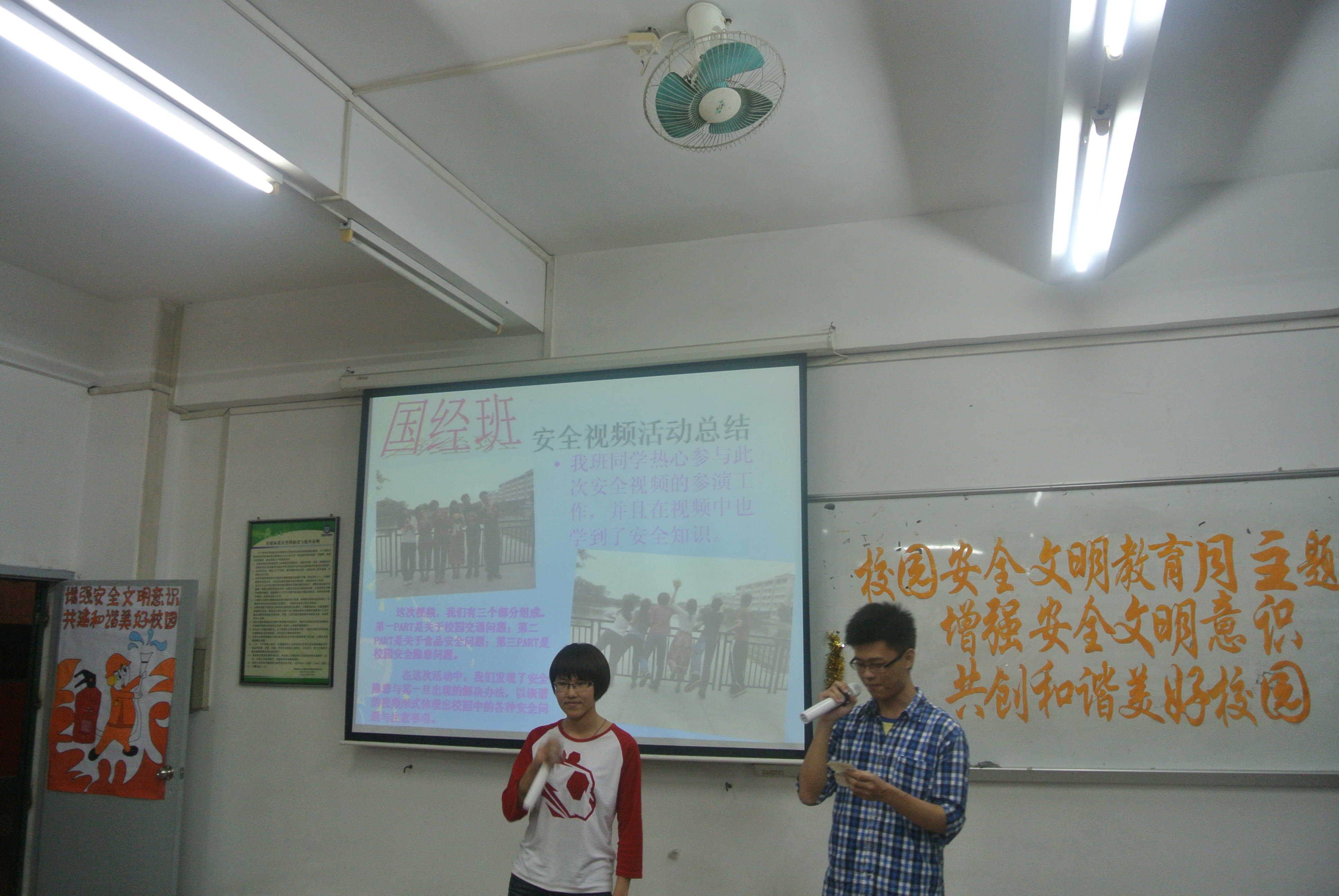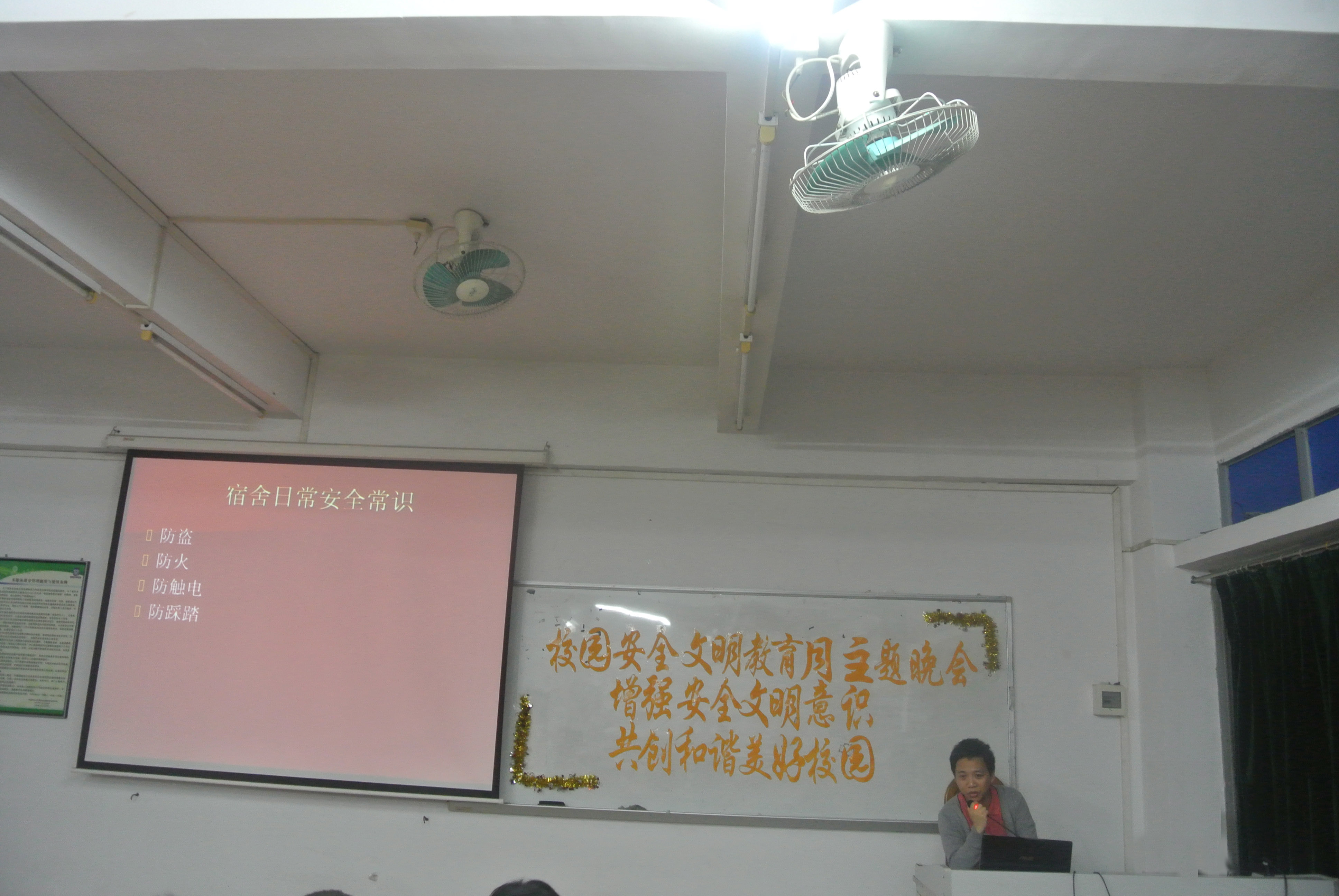 2013年4月26日星期五晚上19点20分,由法律系员工会保卫部主办的“增强安全文明意识,共建和谐美好校园”的校园安全文明教育月主题晚会于C203隆重举行。出席本次晚会的有法律系员工会指导老师叶小办、法律系11级辅导员祝建波、法律系员工会主席赖伟杰﹑副主席秦乐璋、秘书长吴美妙。