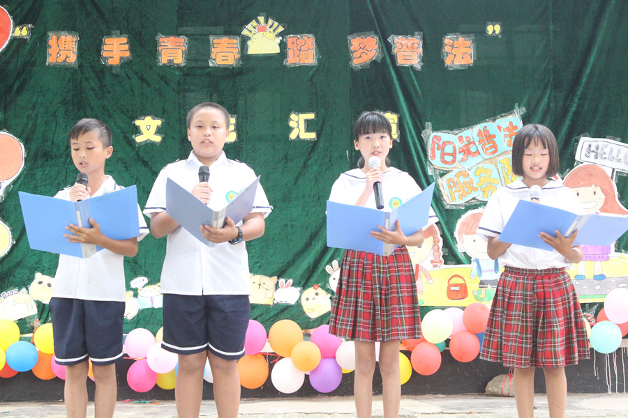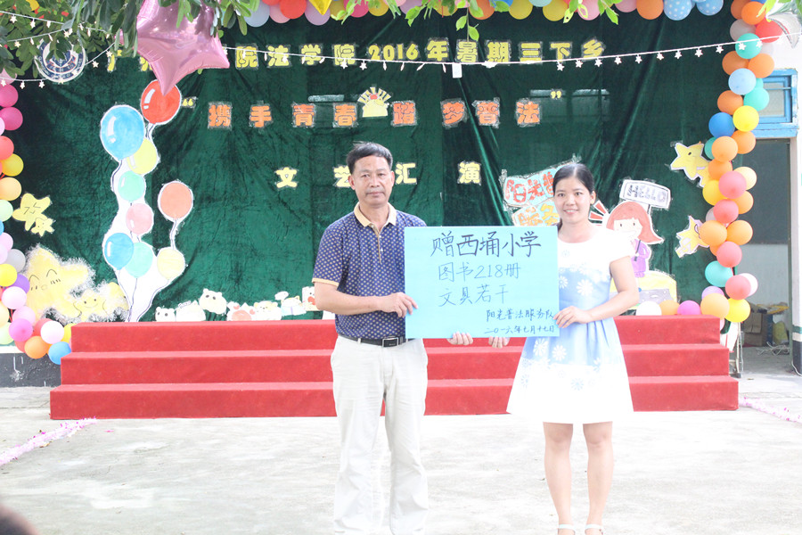 7月17日下午,太阳成集团tyc暑期三下乡阳光普法服务队在西埇小学操场上举办了“携手青春,踏梦普法”文艺汇演,洋青镇党委委员周艺华,团县委宣传部部长周敏智,团镇委书记陈小敏,西埇小学董事长陈韶,阳光普法服务队指导老师张仁瀞、祝建波等出席本次活动。