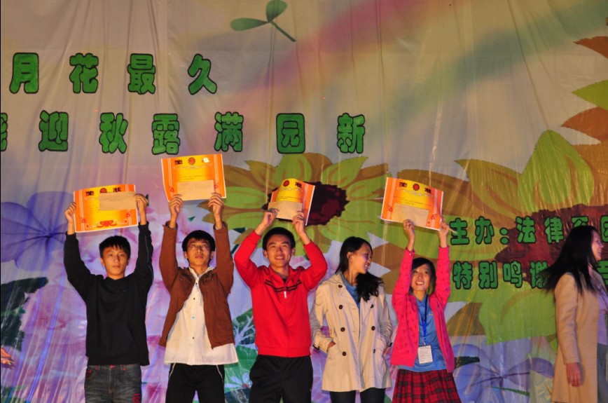最后,在评委的公正投票中,这次晚会的最佳表演奖为话剧队《寂寞就跳舞》,最佳花会馆奖为国经专业《白雪公主》,律务专业《栀子花开》获得了最佳人气奖,而最HOT啦啦队奖花落国经专业。