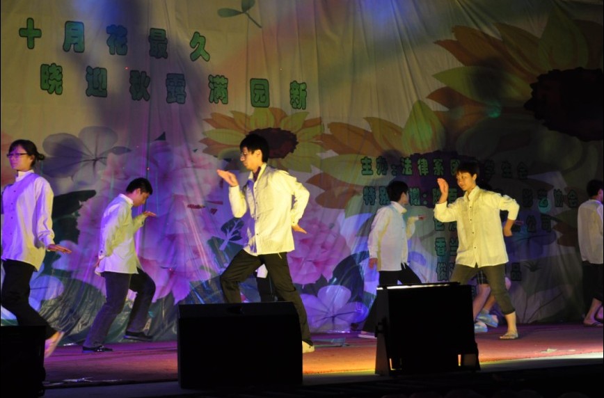 伴着欢快的节奏,慌而不乱的忙碌,有条不紊的调配,精彩的节目就开始了!以《Band Show》开场的动感氛围感染了全场观众,他们的激情、默契、活跃,无疑的给晚会定了欢快的基调。伴随其后的是艺术团的《街舞表演》,她们活力四射的姿态,观众热情的呼声,使整个晚会都沸腾起来了。随着主持人的开场白,音乐的响起,律务专业表演了音乐剧《栀子花开》,向观众诠释了一份师生间浓厚的情感。接着,行政专业的同学上演了一段青春活力的现代舞《Young》,透露着他们对梦想征途的自信。晚会期间,民商法专业的歌曲串烧,音协扣人心弦的歌声和舞协节拍鲜明的舞蹈给晚会增添了不少气氛。