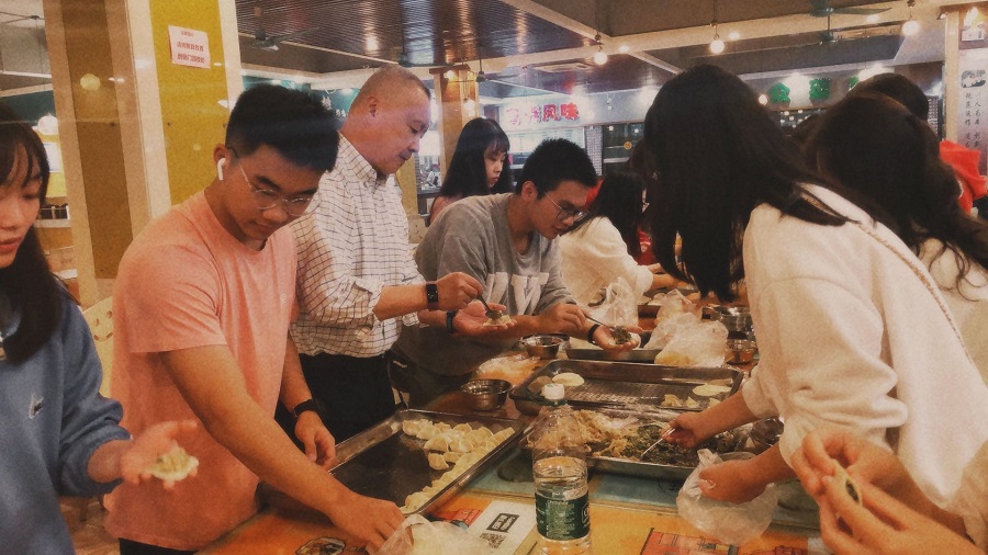 师生共同包饺子