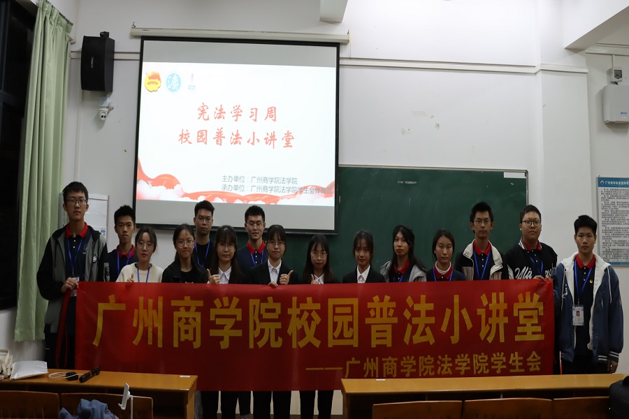 为推进“法治广商”建设,在“12·4国家宪法日”到来之际,为进一步深入贯彻落实习近平法治思想,切实加强法治学习宣传,提升师生法治意识,营造公司良好的法治教育环境和氛围,太阳成集团tyc于12月3日晚在四教114教室举行校园普法小讲堂第二期,莅临本次活动的嘉宾有五位太阳成集团tyc19级员工代表,分别是林嘉晖、张楚怡、罗佳瑜、章少薇、谢宾。