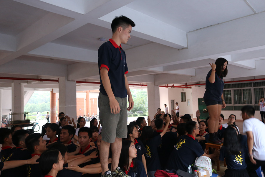 “信任背摔”作为全场培训最高难度的项目,在项目开展过程中干部们不断突破自己并且充分相信自己的团队伙伴,完成了站在高处上从后倒下的这一考验心理、挑战极限的动作。这一项目不仅考验的是部长们的挑战能力,更是充分考验了干部与干部、部长与干部之间的合作与信任,使干部们懂得一个团队的核心所在,大大地增强了团委的凝聚力以及干部对团委的归属感。