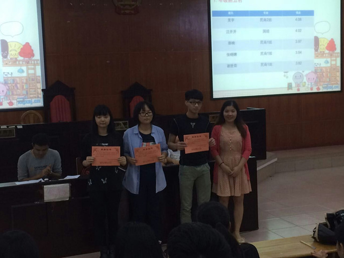 首先,辅导员张仁瀞通过PPT展示同学们大一第二学期和大二第一学期成绩的整体情况 ,对取得优异成绩的个人和班集体予以充分肯定,同时通过数据对比分析,指出同学们在学习方面的不足之处以及未来的努力方向。随后,张仁瀞为在上一学年获得优异成绩和年级员工个人(年级前五名,班级前三名)、宿舍(“学霸宿舍”,宿舍成员绩点均3.0以上)以及班级(优良学风班,3.0以上绩点人数所在比例最大的班级)进行表彰。她表示,希望通过表彰先进树立学习榜样,努力营造良好的学习风气,进一步激发同学们主动学习的积极性,向榜样看齐,取得更大的进步。此外,张仁瀞还为同学们普遍关心的申请社会实践课程学分、国家司法考试、毕业见习和实习、考研准备等一系列问题做出了详细解答,并对法律系2014级下一阶段的工作、学习、生活方面提出了更高的要求和作出了具体的部署。