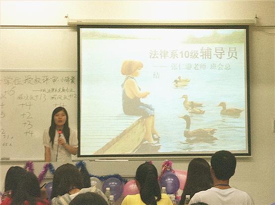 在主题班会暨团日活动即将接近尾声时,辅导员老师简明扼要的讲解了在全年级安排本次主题班会的初衷和意义,并针对迎评准备工作中的各种问题,从学风、基本技能测试、宿舍卫生到日常行为规范等多个方面出发,对大家提出了合理的建议及要求。使同学们不仅加深了对评估工作的认识,做到评估中人人过关,并从中学到不少的生活和学习的宝贵经验。