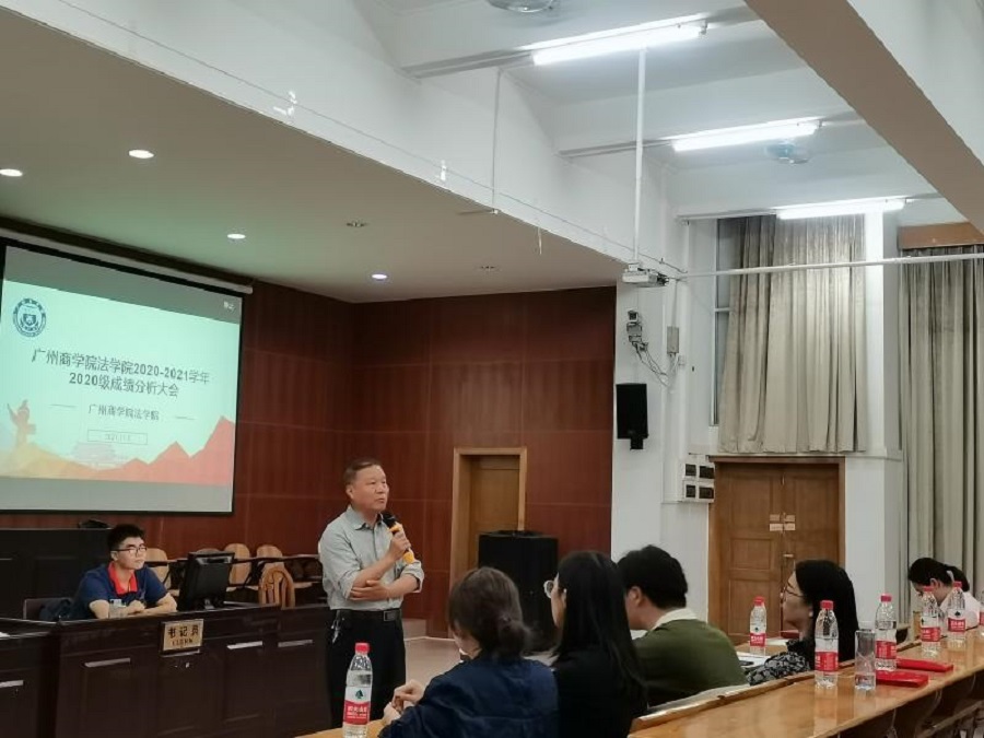 首先依次由各班学习委员通过PPT向同学们汇报大一下学期的成绩,通过两个学期的成绩进行对比,在表扬进步之余指出以下问题:各班级的成绩两极分化严重、总分拔尖的同学较少、公共必修课挂科率相对较高,并建议同学们能够针对自己的弱势学科做出相应的对策,用思维导图的方法来构建知识框架以达到事半功倍的效果,通过上课积极回答问题来提高平时分、重视公共必修课。其次是颁奖环节,由赵家琪、陈秀图分别为获奖的陈莉、叶丽君、李凯津、吴学君、李泳、张蓉纯颁奖。姚多娇博士针对20级各班同学的具体情况,给出了多种建议并表示:“同学们的学习不是一时的,而是终身学习,未来的学习之路还很长。”赵家琪提出:“法律者,善及公正之术也”的观点,并表示:“学习不能给自己留后路,应该巩固基础,做到抽象的知识具体化,达到将学到的知识灵活运用的程度。”