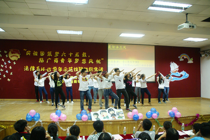 梦想承载着我们的希望,青春寄托着我们的追求。为了让共青团员更好地享受来自广商团支部的关怀,法律系团委组织部于11月30日晚7点30分在A206举办了以“庆祖国筑梦六十五载,扬广商青年梦想风帆”为主题的示范性团组织生活。出席本次活动的嘉宾有公司团委组织部副部长陈美贤,法律系团委副书记张婷,组织部部长李集明以及各兄弟系组织部代表。