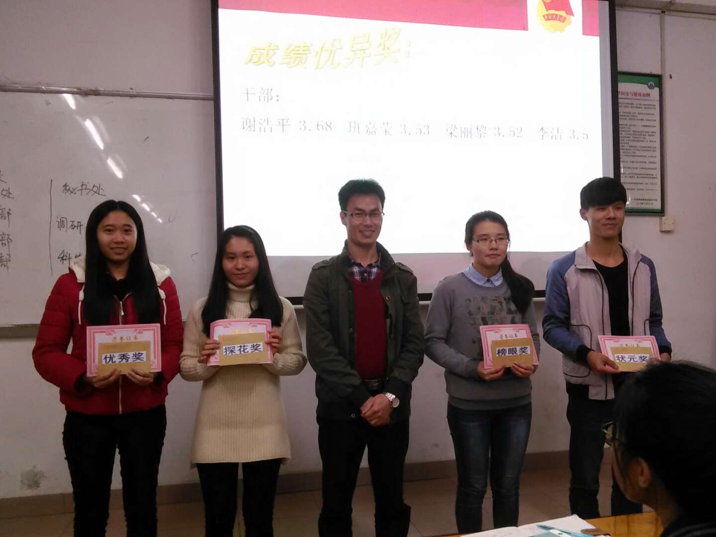 我系团委全体成员经过上一学期的共同努力,较好地完成了公司及我系领导指派的各项任务,取得了一定的成果。为表彰先进、宣传典型,大会给予干部干事们办法了“先进小干事”、“优秀小干事”、“最具潜力小干事”、“成绩优异奖”等四个奖项,重在激发干部干事的奋斗激情,鼓励干部干事继续发扬艰苦奋斗的优良传统。