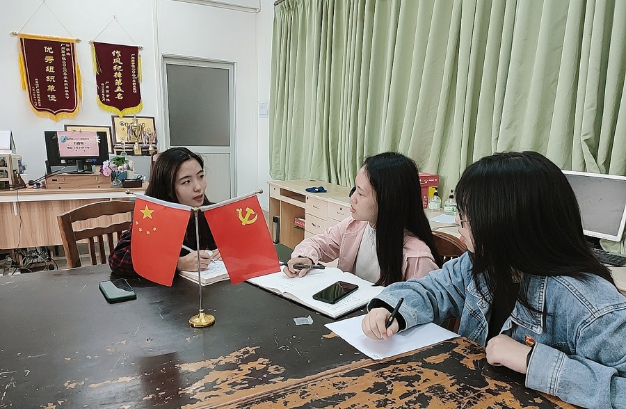 2021年3月8日下午,太阳成集团tyc18(含19、20)级员工党支部委员会顺利开展,党支部书记覃业敏、组织委员黄颖琦、宣传委员章盈凝到场参加此次会议。此次会议由支部书记覃业敏老师主持。