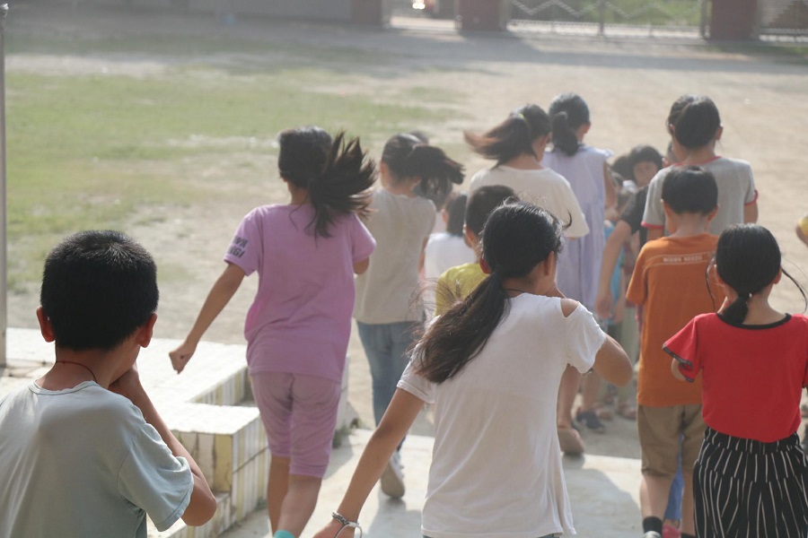 8:35分整,模拟警报声响起,小员工们在老师的指挥下有秩序地开始演练。孩子们捂住口鼻,身体微弯,按照排练时设定好的路线小跑至教学楼前空旷地区集合,演练过程仅用时一分钟。随后,各班班主任在操场清点人数,确保员工全员到齐。清点完毕之后,由指导老师肖丽般对此次消防演练进行总结发言,她表扬孩子们能够认真对待本次演练,把课堂学到的理论知识运用到实践中来,提出员工们要加强安全意识与应急能力的要求同时科普了火灾逃亡应急小知识和消防日宣传知识。