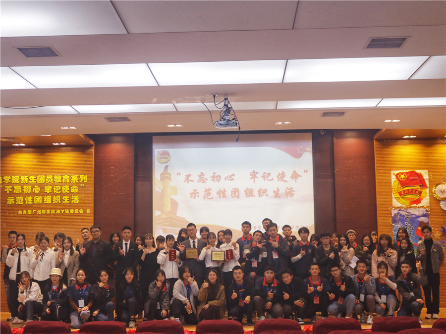 本次活动由19级法学一团支部、19级法学三团支部作示范性团组织生活展示。其中,19级法学一团支部的特色话剧《歌唱二小放牛郎》展现了抗日小英雄王二小机智勇敢、不畏牺牲的爱国精神;19级法学三团支部的《国家》大合唱充分展现了团员们的精神面貌,点燃了全场观众的爱国情怀。最后,李华学老师为19级法学一团支部与19级法学三团支部颁发示范性团支部荣誉奖项,且对19级法学一团支部和19级法学三团支部在团组织生活中出现的创新元素做出了高度评价,并希望团员们能在生活和工作中保持积极性与创造性,建设更加优秀的团支部。