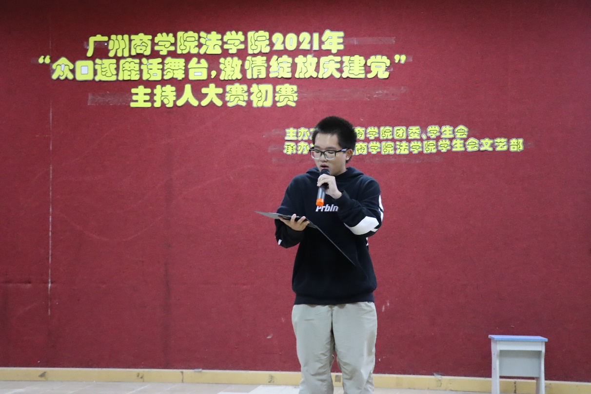 本次比赛分为三个环节:诗集朗诵、模拟场景主持、评委提问,其中还穿插了才艺展示作为选手的加分项目。参赛的选手衣着得体,临场不惧,诗集诵读朗朗上口。以从容的表现出色地完成了各个环节。整体看来,参赛选手表现出了出色的基本主持功底和临场应变能力。其次,经过评委们的评选,获奖结果如下:吴丁煊同学荣获三等奖,马诗茵同学荣获二等奖,黄培铿同学荣获一等奖并推至校级参加决赛。最后,在主持人的总结下,本次主持人大赛初赛告一段落。