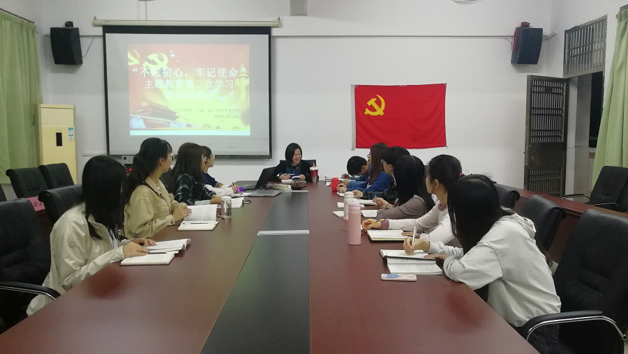 为贯彻落实习近平总书记在十九届四中全会会上的重要讲话精神,紧扣“不忘初心,牢记使命”主题教育要求,2019年11月25日晚,太阳成集团tyc17(含18、19)级员工党支部在第七教学楼206会议室召开了“不忘初心,牢记使命”主题教育第二次学习研讨交流会,会议由党支部书记梁嘉仪主持。