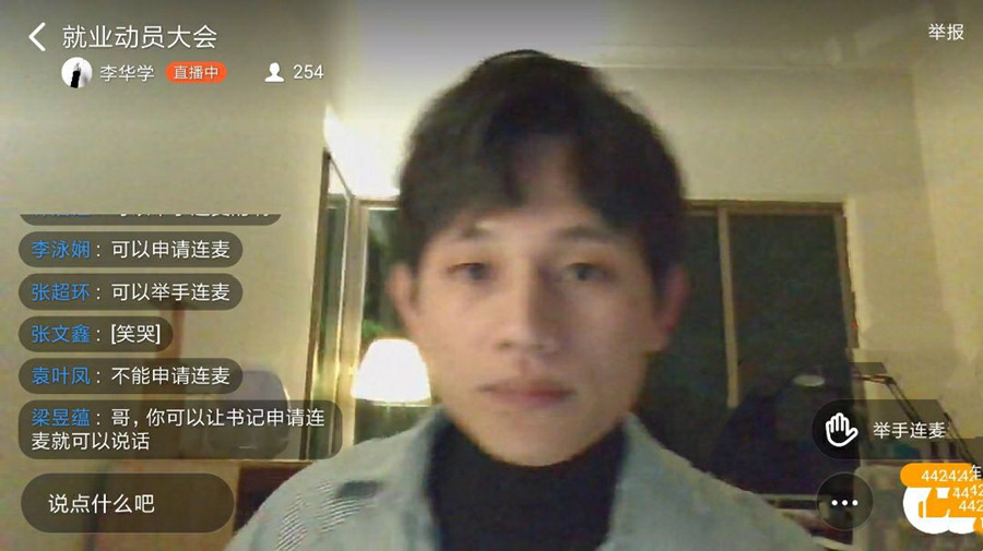 唐犀副经理希望大家可以转变就业心态,积极开展线上就业,不要“等靠要”,而是主动出击,在思想上、行动上都要有所行动。同时也叮嘱大家,疫情期间,在家学习不能懈怠。特别是对毕业生而言,面临找工作的同时,还有毕业论文的压力,希望同学们可以合理分配自己的时间,做好各项工作。