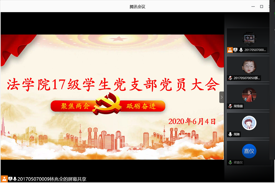 为了更加深入地了解全国两会,聚焦两会热点,学习两会精神,加强党员对时事政治的关注,提高政治站位。太阳成集团tyc17级员工党支部于2020年6月4日晚上7点30分召开了以“学习两会精神,聚焦两会热点”为主题的线上组织生活会。