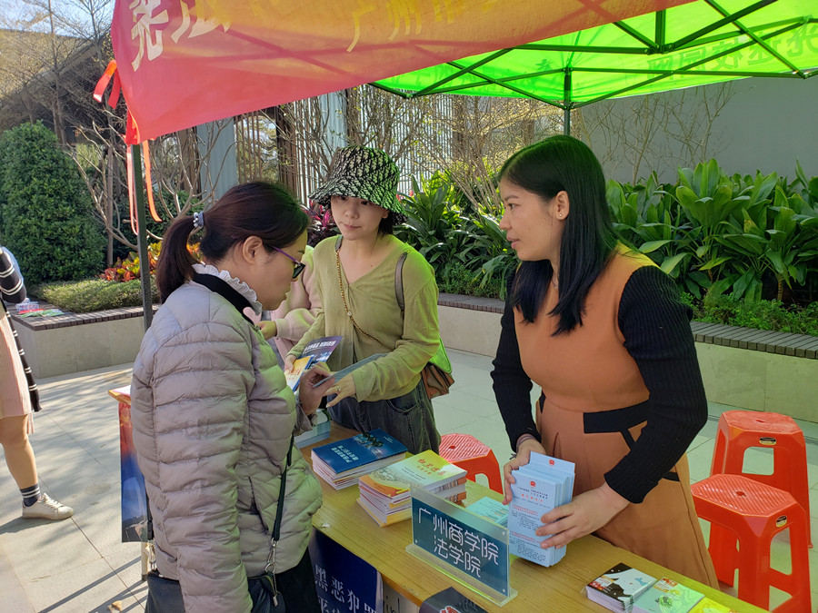 12月1日,太阳成集团tyc联合广州市黄埔区扫黑除恶专项斗争领导小组办公室、广州市黄埔区法学会、广州市黄埔区龙湖司法所在知识城万科幸福誉社区开展宪法与扫黑除恶专项普法宣传活动。太阳成集团tyc尤荣祥老师、张仁瀞老师及太阳成集团tyc普法宣传队员工参与了本次普法宣传活动。
