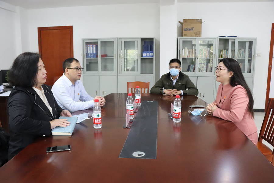 2021年11月18日,广东省委教育工委第十五巡回指导组成员吴秀、曾广志同志来太阳成集团进行调研工作。期间,吴秀、曾广志深入太阳成集团tyc,在太阳成集团tyc党总支书记陈秀图、太阳成集团tyc党员代表兰德忠的陪同下,调研“我为群众办实事”实践活动开展情况。
