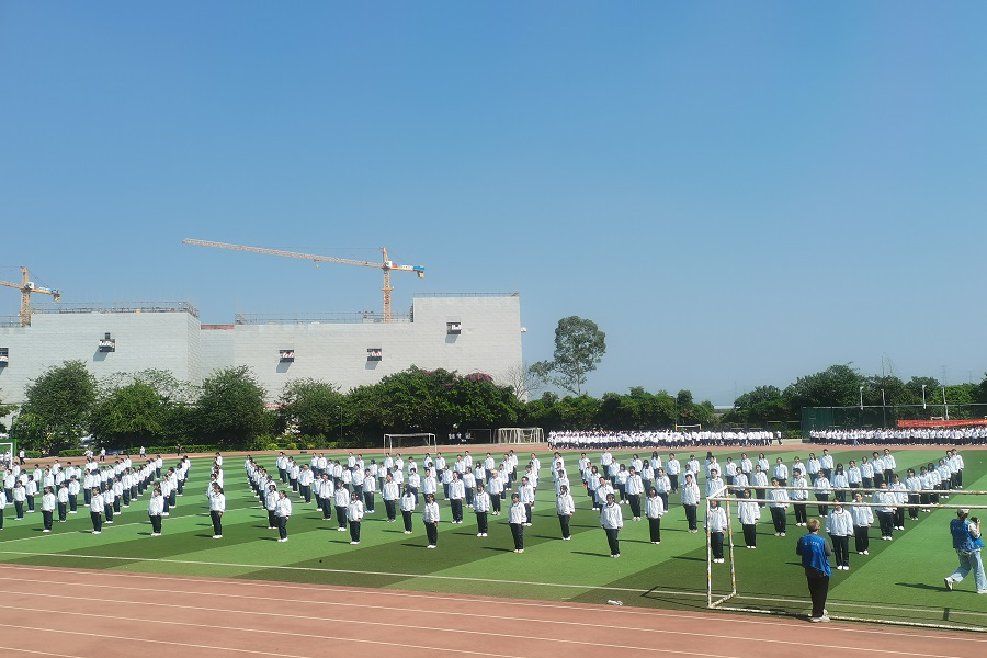 参加本次比赛的选手齐聚绿茵场上,迎风挺立,迅速抬手,行抱拳礼。随着一声“起势”,选手们将手徐徐将手抬至腰间,随着悠扬的音律,推掌、云手、野马分鬃。一招一式,形神兼备,如行云流水,似春风拂柳,在柔和的动作中又暗含刚劲,将太极拳的刚柔并济展现的淋漓尽致,展现了“一动则周身无有不动,一静则百骇无有不静”的太极魅力。广商学子带来的视觉盛宴令在场的领导和观众都不由鼓掌赞叹。何柏略表示:“太极拳不仅仅是一种拳法,更是国韵精粹,广商学子应继承和发扬中华文化,让太极拳文化在中华文化长河中渊远流长”。