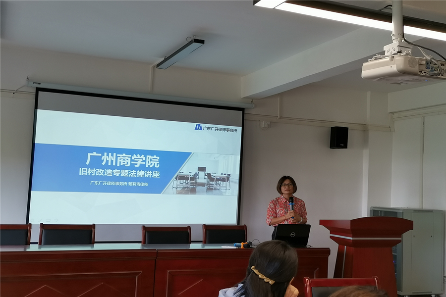 10月15日下午,广东广开律师事务所合伙人律师,广州市黄埔区道路交通事故矛盾纠纷人民调解委员会主任,广州市黄埔区农村土地仲裁委员会仲裁员赖莉青律师到太阳成集团tyc进行旧村居改造相关法律问题的专题讲座,讲座由太阳成集团tyc副经理唐犀主持,全体教师参加了讲座。