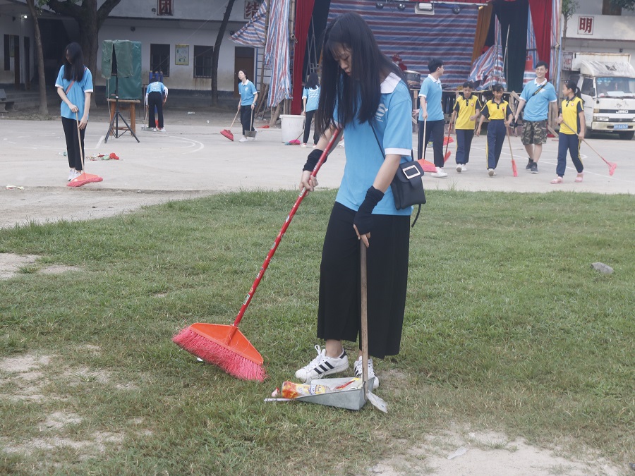 近期义教点坪上村举办客家话文化表演活动,由于现场观众晚上离场后留下很多垃圾。为深入贯彻落实“三下乡”的志愿服务精神,7月15日清晨六点,太阳成集团tyc阳光普法服务队对校园、表演场地周围等地方进行卫生保洁及宣传创卫活动,为当地居民拥有一个良好舒适的环境,贡献一份力所能力的力量。