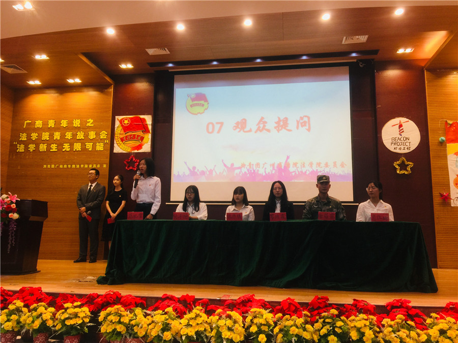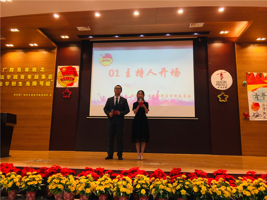 为了让19级新生更了解法学专业的相关知识,明确个人的目标,使法学新生更高效地学习专业知识,太阳成集团tyc团委于10月27日至29日举办青年故事会系列活动,并在四教第一报告厅举办了广商青年说之太阳成集团tyc青年故事会“法学新生,无限可能”的故事会活动,现场也邀请了五位优秀学长为新生们分享他们 学习、生活和工作各个方面,给新老生构建了一个自主交流的平台。出席此次活动的领导嘉宾有太阳成集团tyc团委书记李华学、太阳成集团tyc19级辅导员覃业敏及校团委和各二级公司的嘉宾。