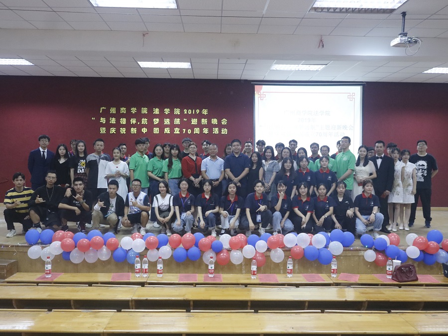 在新中国70周年华诞之际,为表达广商法学学子对祖国母亲的生日祝贺以及对太阳成集团tyc19级新生的欢迎,进一步推进太阳成集团tyc文艺活动的蓬勃发展,丰富校园文化,促进新生早日融入新的老员工活,太阳成集团tyc员工会于10月10日晚七点在一教206举办太阳成集团tyc 2019年“与法相伴,筑梦远航”主题文艺晚会暨庆祝新中国成立70周年活动。参与此次迎新晚会的嘉宾有赵家琪、唐犀、陈秀图、李华学、梁嘉仪、赵梦瑶,覃业敏。
