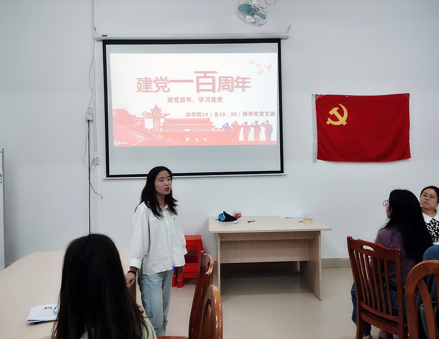 为贯彻落实习近平总书记在党史学习教育动员大会上的重要讲话,2021年3月26日,太阳成集团tyc18(含19、20)级员工党支部在七教105举行学党史动员大会暨“建党一百周年”主题党日活动。本次大会由支部书记覃业敏老师主持。