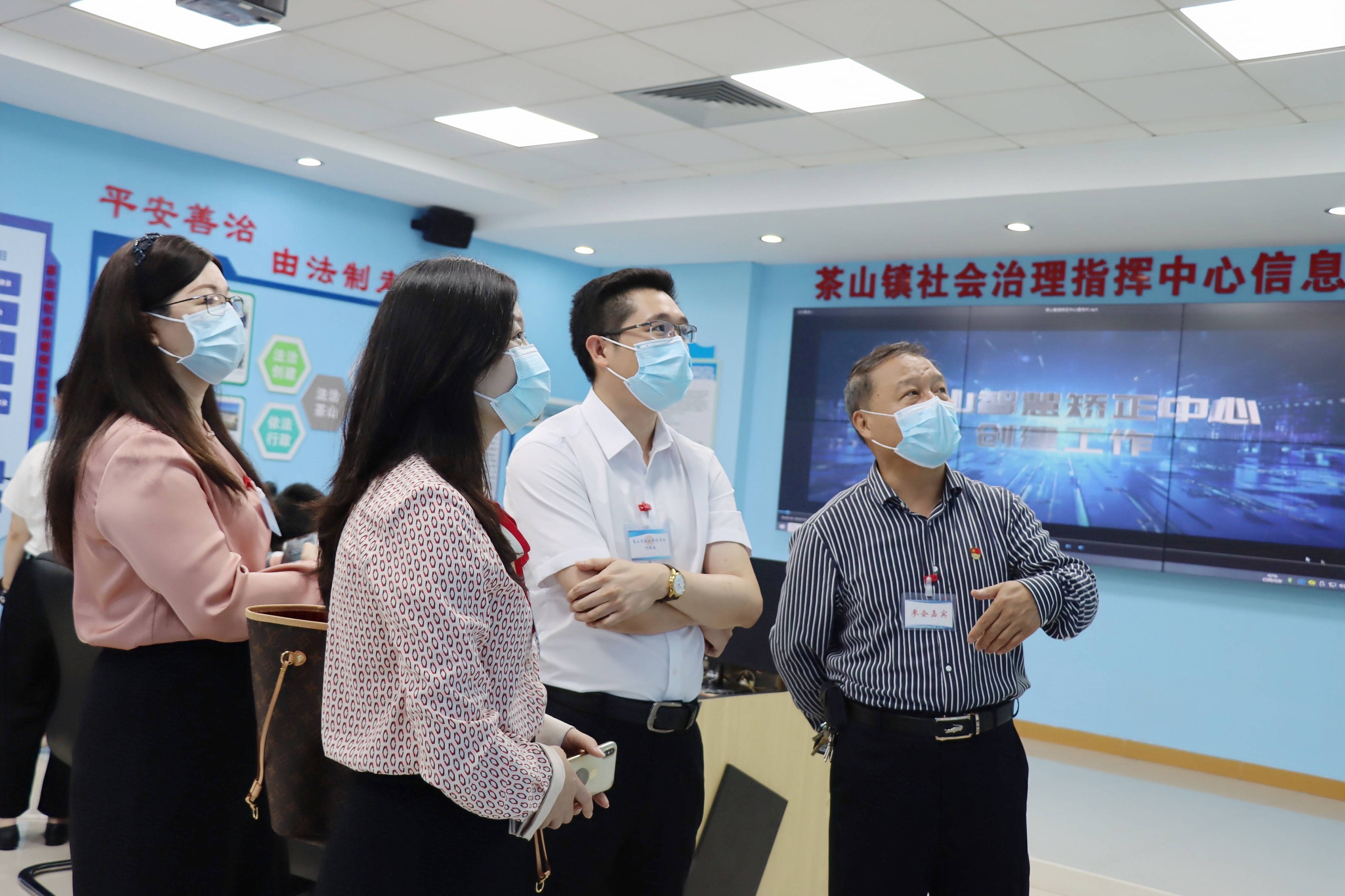 何国栋首先就茶山镇的社会治理工作概况、广东省维稳示范点创建工作的情况和智慧矫正中心示范点创建工作概况进行介绍,具体分享各功能室的建设情况及智慧矫正工作流程,体验技能培训室、远程会见室、信息采集室、警务联络室、宣告室、心理辅导室等各大功能室以及参观智慧自助报到终端、移动执法终端等智能化执法设备、“VR系统”震撼教育、“彩虹心桥”心理矫治系统等情况。