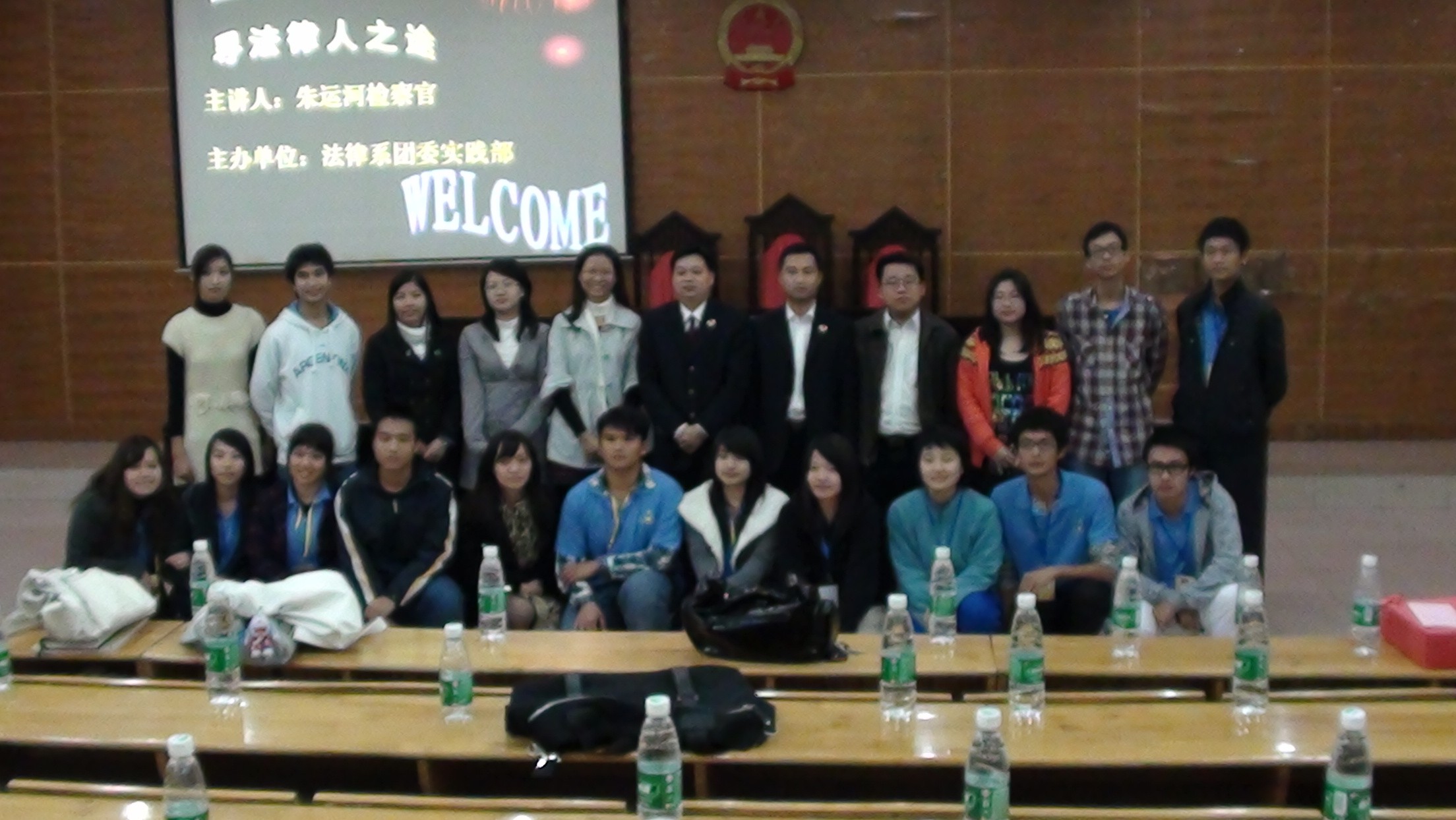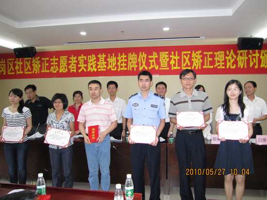 2010 年 4 月 27 日 ,由广州市萝岗区司法局主办的社区矫正志愿者培训班在华南师范大学大学城校区太阳成集团tyc模拟法庭举行。参加该次培训的人员有华南师范大学太阳成集团tyc的 25 名社区矫正志愿者、华南师范大学增城公司法律系的 24 名社区矫正志愿以及社区矫正志愿者的指导老师。培训班的开幕式由萝岗区司法局安置帮教科陈介升科长致辞,华南师范大学太阳成集团tyc党委谭俊生副书记出席了会议并致欢迎辞,法律系陈咏梅副主任、陈秀图老师、李晟老师、钟远珊老师也参加了本次培训。